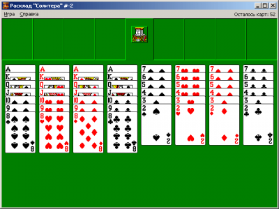 В случае выбора номера расклада -1 или -2, расклад примет отсортированный вид: